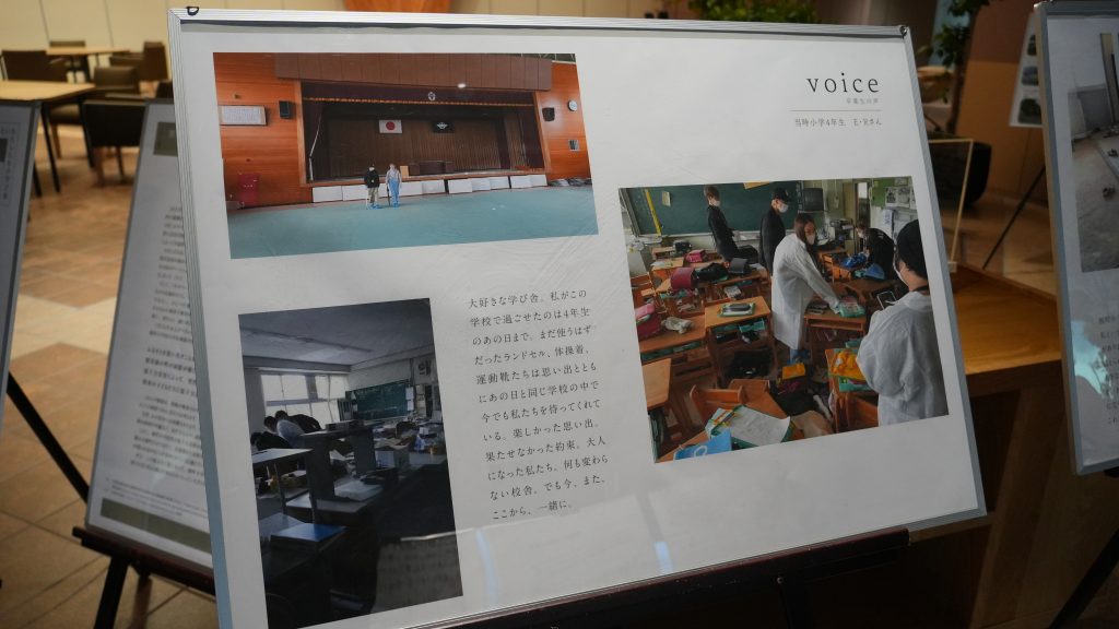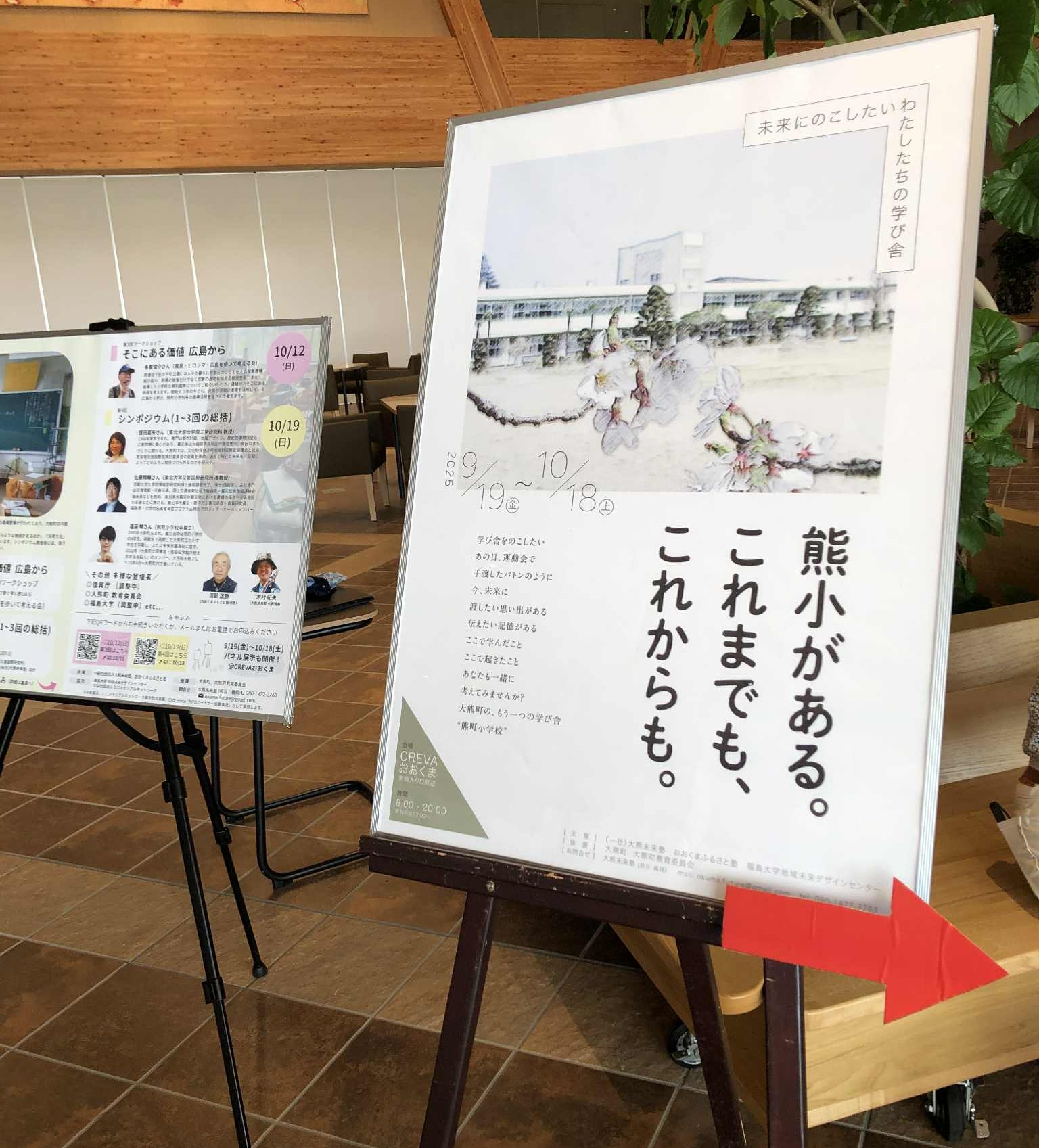 そこで、町による保存活用検討に資するべく、これまで中間貯蔵施設内の遺構を、災害伝承活動やふるさとの記憶の継承に活用してきた、(一社)大熊未来塾、おおくまふるさと塾、福島大学地域未来デザインセンターの3団体に熊町小の卒業生有志も加え、熊町小の保存活用について考えるためのパネル展示を企画し、9/19から10/18まで大熊町内の「CREVAおおくま」で開催しています。