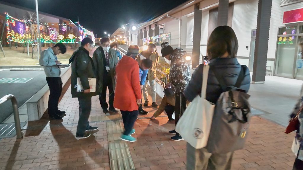災害時に危険となりそうな箇所については、後日当サテライトで一覧表にまとめ環境対策課へ資料提供を行いました。役場内でも該当箇所の共有がされ、災害公営住宅を所管する担当課から、役場と住民合同の夜間パトロールの要請を受け、11月27日(木)に実施しました。役場と住民とで災害時に危険となりそうな箇所の共有を行い、「暗い」「段差がある」等の箇所の改善が進むことが期待されています。